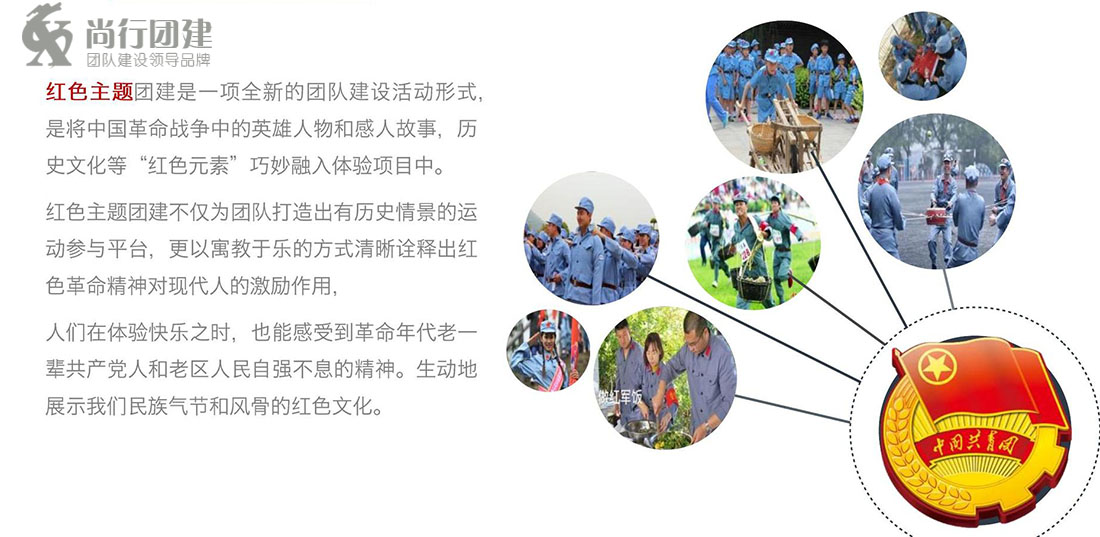 项目大纲:走红军路、吃红军餐,红色情景体验:扩红(当兵就要当红军)、生死时速、荆棘排雷、翻越大雪山、寻找党支队、飞夺泸定桥等。